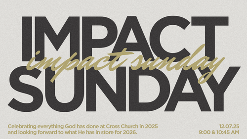 Impact Sunday is happening on December 7th. It is one of the most meaningful days of the year at Cross Church! It’s a time to look back and celebrate all that God has done in and through our church because of the generosity of the Impact Offering, and to look ahead with faith and excitement for what He has in store for us in 2026. Together, we’ll take up this year’s Impact Offering, believing God will continue to use our church to make a lasting difference in our community and beyond. We’ll also celebrate life change through baptisms, a powerful reminder of the impact Jesus is making right here at Cross Church. Don’t miss this incredible Sunday!